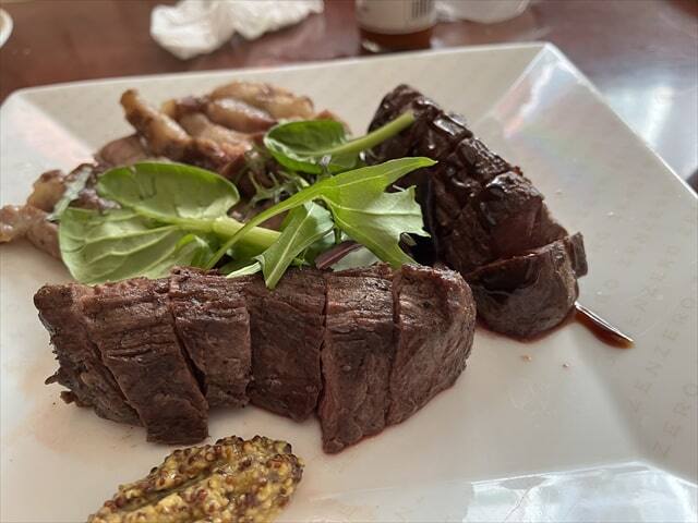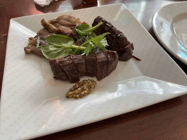 3種のお肉盛合せはポークとビーフと鹿肉とのことでした。