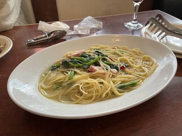 ほうれん草とベーコンとオリーブオイルのベーシックなパスタでした。