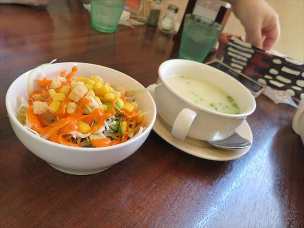 スープ、サラダ、カレー、ナンまたはライス 918円