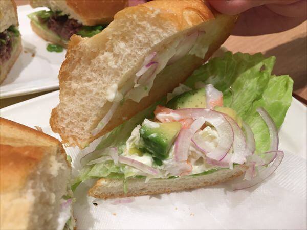 こちらもサンドを開いてアボカドと海老がどれほど入っているのかチェックしてみました。