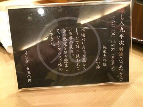 続いてはウニですが、ここで泡系が無くなってしまいましたので、醸し人九平次別誂を楽しむことにしました。