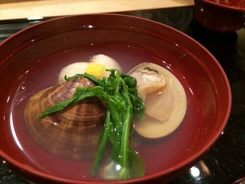 ハマグリの汁と最後は芽ねぎです。