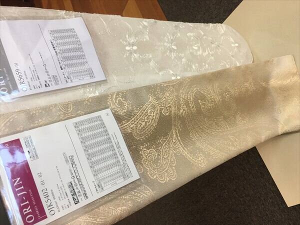 生地は川島織物というメーカーのものを選びましたが、こちらは我が家の着物の帯で知っているメーカーでした。