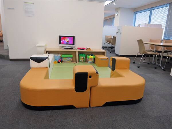 デザインスタジオの一角には子供が遊べるコーナーがありますので、子供が退屈したらこちらでDVDを見たり遊んだりすることができます。