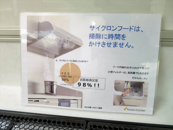 また換気扇の形状が他社とは違うサイクロンフードとので煙がフードから出にくいということでした。