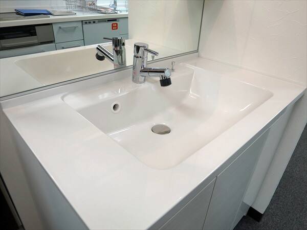 トクラスは後ろの立ち上がり部分が高いので水が飛んでも問題ないということと、人工大理石の厚さが厚いということです。