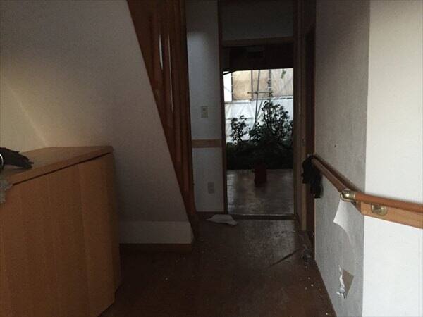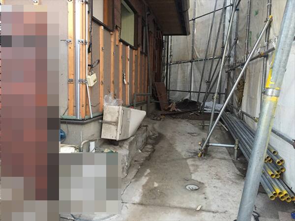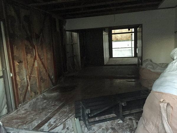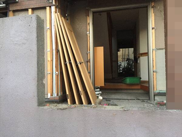 硝子戸や木製の扉も外されて、家の内側の壁も剥がされました。