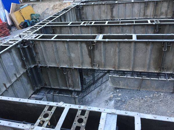 基礎の成形には鋼製の型がメインに使用されていたのですが、我が家の場合は一部地盤の関係で深基礎となっています。
