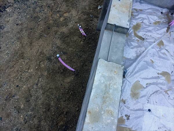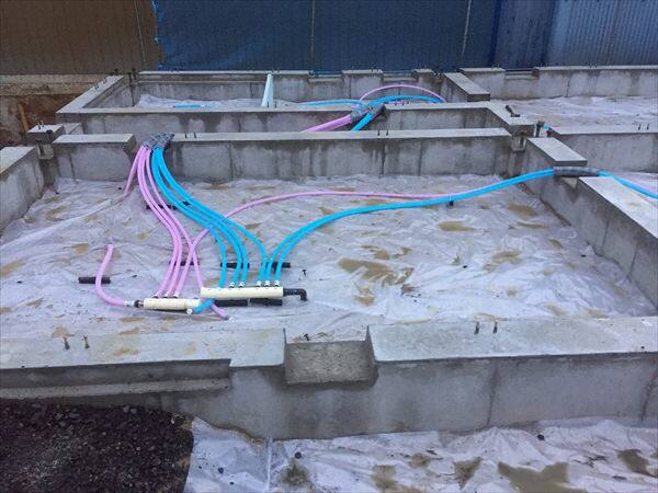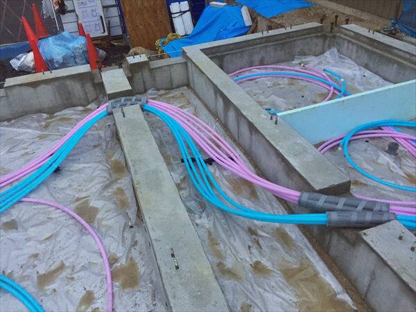 地面の部分にはビニールが敷かれ、すでに配管も翌日には通っていました。