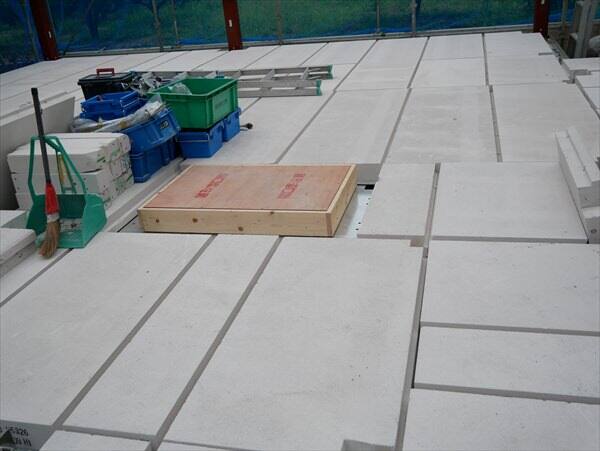 プレカットしてありましたへーベルボードは梁の上に乗るだけですから、ほとんどの所はガタツキもなく設置されていました。