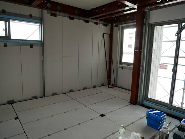 床に敷かれているへーベルボードの厚みが100mmでしたので、同等の厚さのへーベルボードが壁にも使われていると勝手に思っていました。