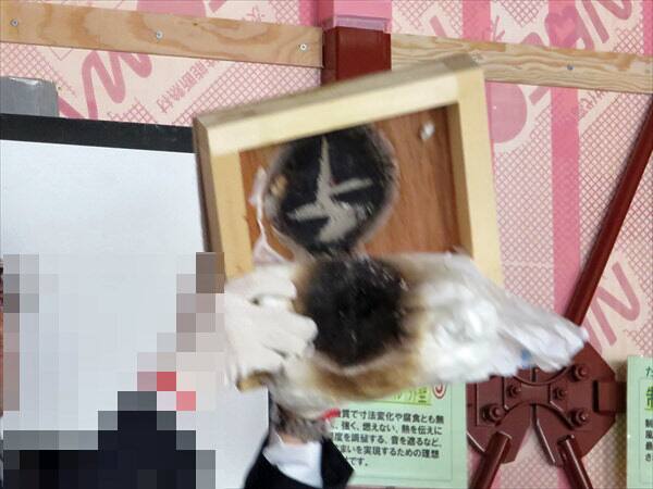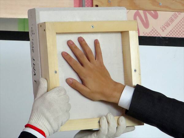 断熱性は実際の壁のミニチュアを使い、バーナーで壁の表面を加熱した際に壁の裏側の断熱材や板などはどうなるかといった実験でした。