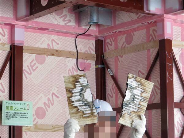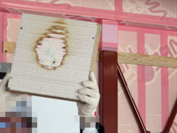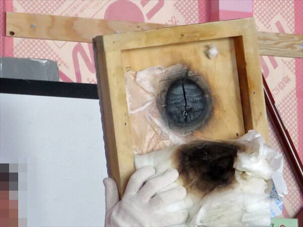 モルタルに煉瓦を貼った壁材や窯業(ようぎょう)系サイディングはバーナーの熱によって室内側の板は焼け焦げていましたし、断熱材も溶けていました。