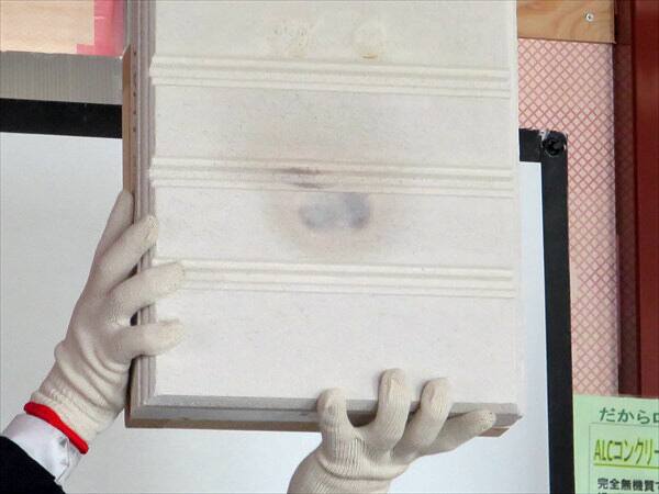 加熱した窯業系サイディングは30cm四方のものですが、熱で反ってしまっていましたし、係の方が力を加えますと真っ二つに折れてしまいました。