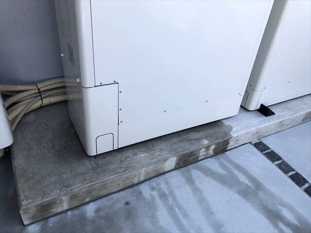 我が家のエコキュートの機器は2年になりますが最近になって貯湯ユニットの下のコンクリートにシミができていたので2年点検に来た工務店の方に故障かなと相談しました。