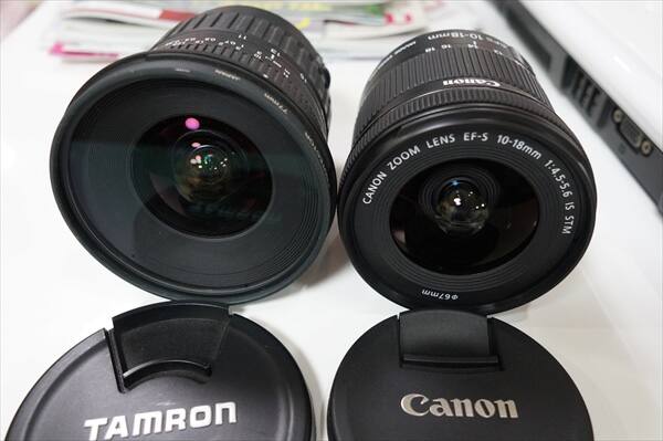 AF11-18mm F/4.5-5.6 DiII LD Aspherialの重さは345グラムなのですが、当初はこれはとてもコンパクトで軽いと感じていたのですが、キャノンEF-S10-18mm F4.5-5.6 IS STMの240グラムは圧倒的に軽いのです。