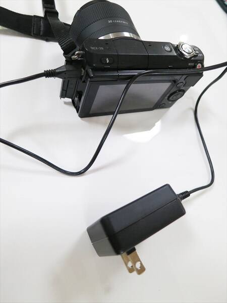 そのためNEX3nは付属のマイクロUSBケーブルを使いUSBポートで充電するか、付属のACアダプターをマイクロUSBケーブルにつないでコンセントから充電するといったようになっていました。
