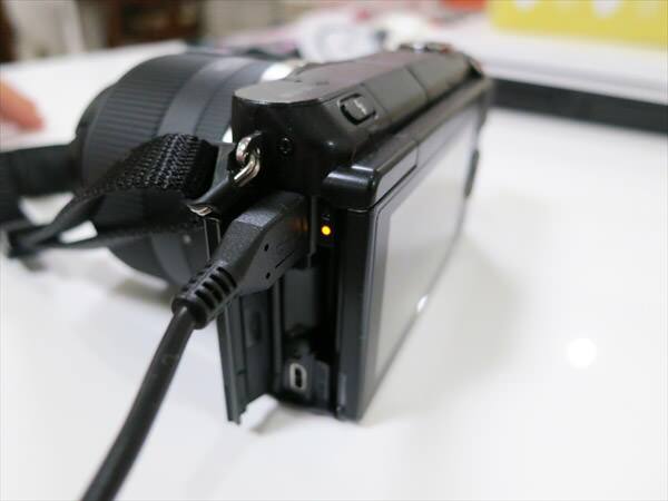 マイクロUSBケーブルをカメラ本体につないで充電する場合は本体のケーブル接続部に充電状況を知らせるランプがあるのですが、これが小さくてとても見難いので格安充電器の購入は大正解でした。