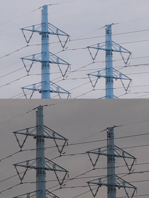 遠くにありました高圧鉄塔を撮影してみましたが、こちらはPEN Lite E-PL2の方がくっきり映っているのはより望遠レンズとなっているからでしょうか。