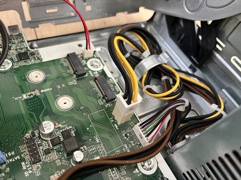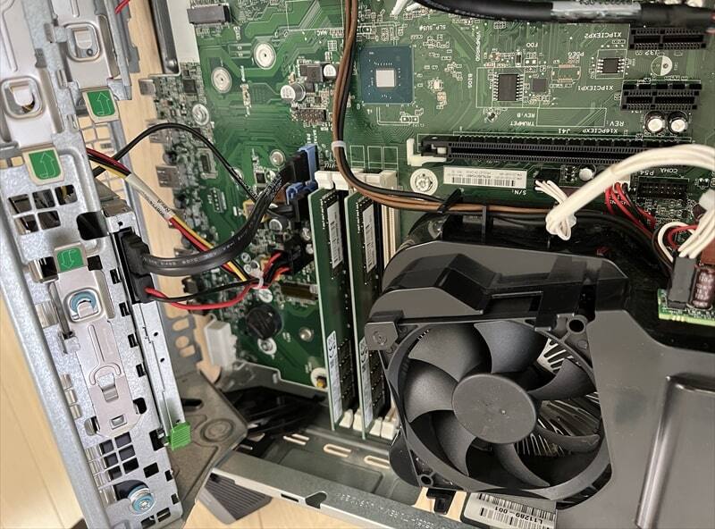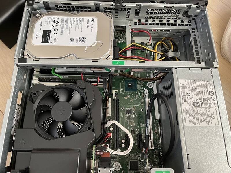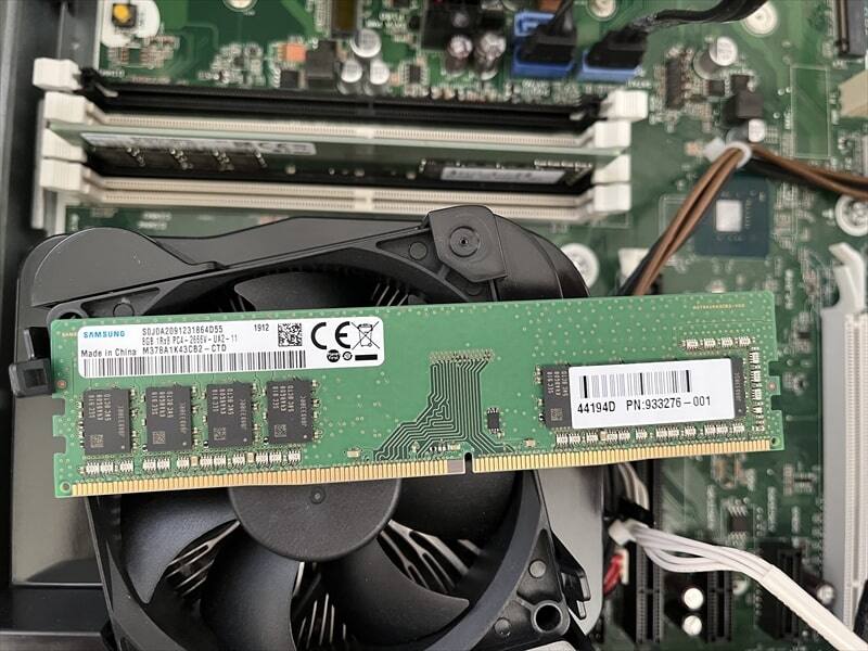 HP EliteDesk 800 G4 SFは企業向けにリースされていたものを回収してデータ消去してクリーニングされて販売とのことでしたので、到着してすぐにケースを開けて中の状況を見ましたが、電源やCPUファン周りなどもとても奇麗にされていました。