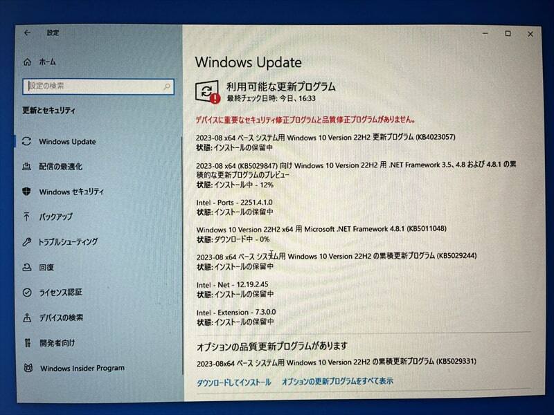 HP EliteDesk 800 G4 SFはデータ消去されて初期化されていますので到着後電源を入れてまずはOSのwindows 10のアップデートを行いました。