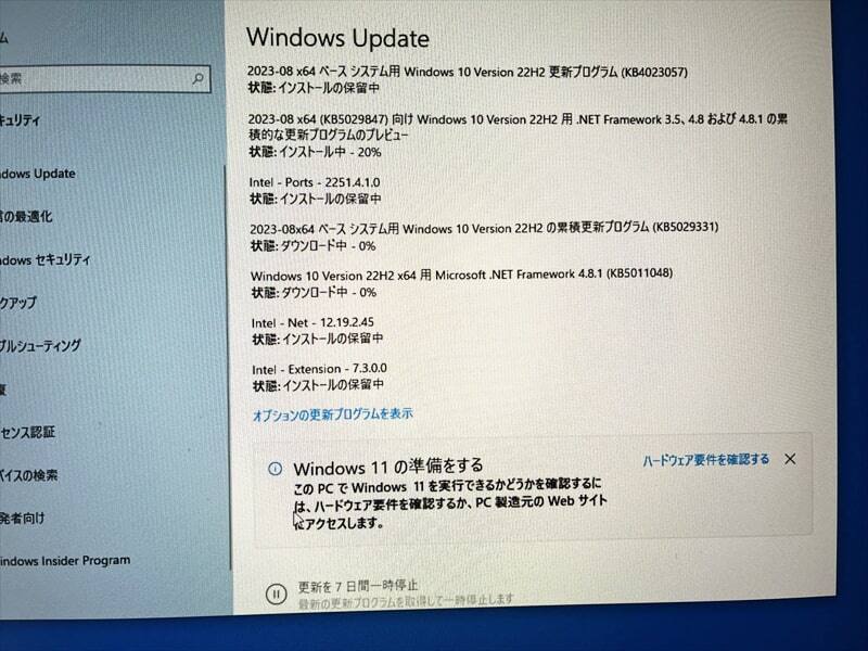 windows11にすぐにアップデートしようと思ったのですが、windows10の最新アップデートのバージョンの22H2をインストールしないとできないと表示がでましたので、全てインストールして結局windows11に出来たのは1日後でした。