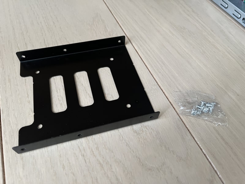 取り付け用のネジも8本入っていますので、SSD本体の固定と3.5インチベイへの取り付けにはこのネジを使えばまったく問題なくできました。