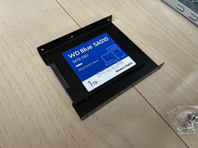 デスクトップパソコンへのSSDの取り付けにはHDDの取り付け場所にSSDを取り付けるためのマウンタを購入して取り付けました。