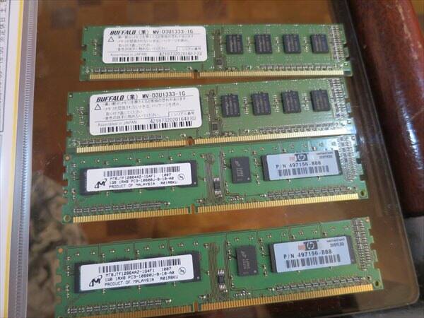 メモリーはHP表示の1GBのものが2枚とバッファロー製の1GBが2枚刺さっていました。