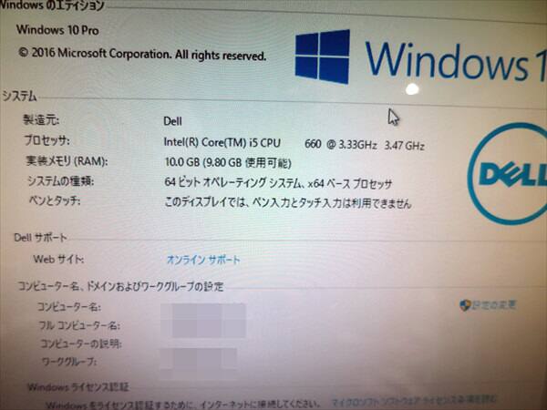 CPUはCore i5 660 3.33GHz 、メモリーは4GB 、ハードディスクは320GB 、OSはWindows 7 Professional 64bit 、ドライブはDVDマルチといったものでした。