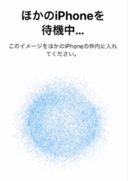 iPhone13 miniにほかのiPhoneを待機中という表示と青い球体状のアニメーションが表示されますので、iPhone8のカメラで青い球体状のアニメーションをスキャンします。