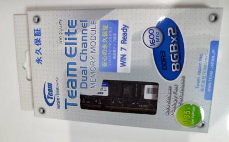 そんな時に偶然検索に引っかかったのがTEAM ELITEのPC3 12800 DDR3 1600MHzの8GBのメモリー2枚セットです。