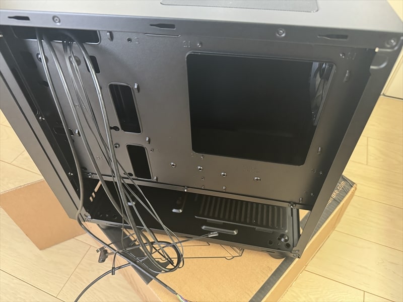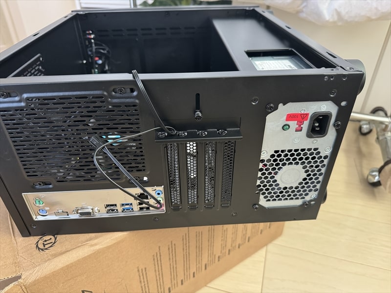 PCケースは使っていたPCのものを使えないかと考えたのですが、メーカー製のためバックパネルが作り付けとなっているので他のマザーボードで使うことが出来ない構造となっていました。