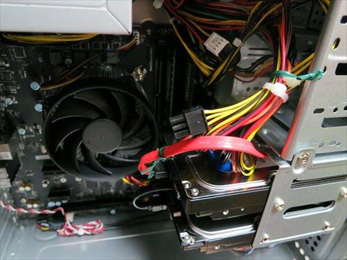増設はとても簡単でsata ケーブルと電源ケーブルをHDDとマザーボード間で接続するだけです。