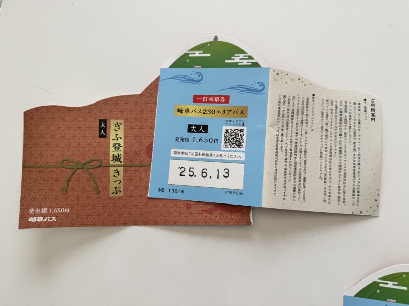 岐阜バス乗車券 岐阜駅から岐阜公園・岐阜城 往復 220円