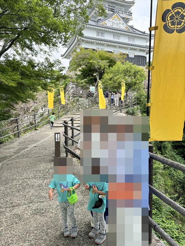 ロープウェイの頂上駅から岐阜城までの道は階段の上りが多く、大人でも結構大変でした。