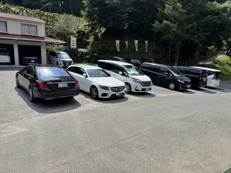 販売所の前に駐車場があり、またその奥にもハウス棚下駐車場があります。