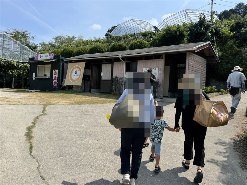 ヤマサ園の駐車場は県道339号線沿いではないことから、柴久園と石窯カフェがある横の道に入ってその奥にあるヤマサ園のぶどうを販売とぶどう狩りの受付をしている建物の前の駐車場まで行きます。
