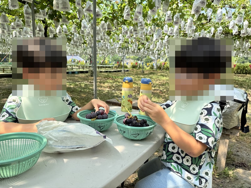 4歳児は巨峰を2房食べましたし、大人は3房食べました。