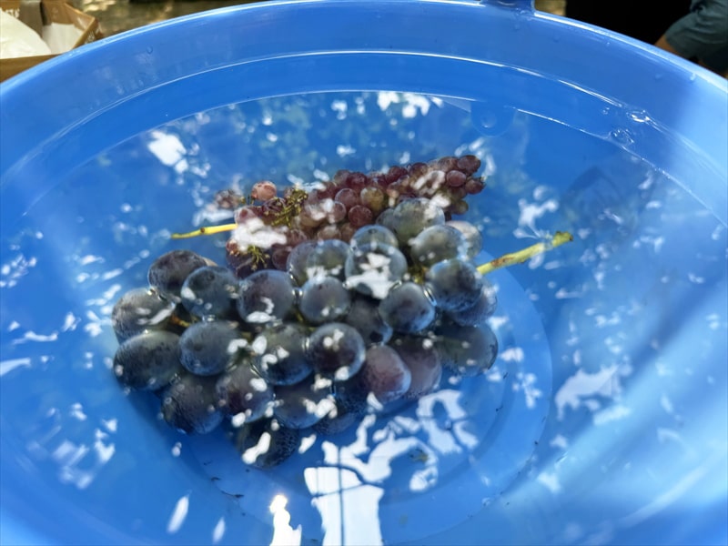 ぶどうは取りましたらそのまま食べても美味しいのですが、気温が32℃もある日でしたから受付で氷を買って、冷やして食べますととても美味しく食べることができました。