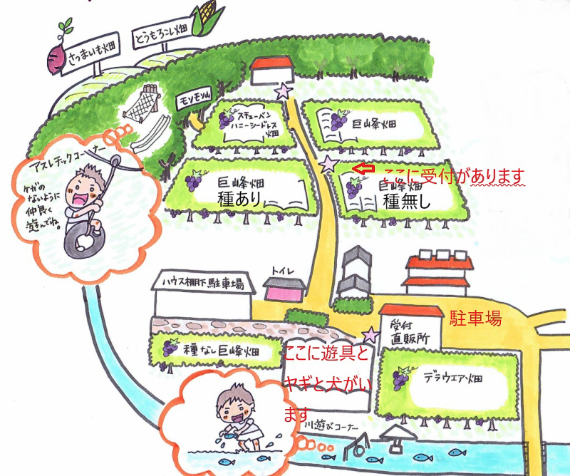 東浦のぶどう狩り園は自宅から一般道で30分ほどで行くことができるのですが、岡崎駒立のぶどう園の様な川遊びなどができる施設やバーベキューの施設はありませんので岡崎駒立のぶどう園に行ったのです。