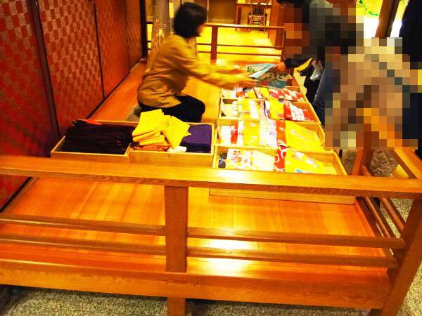 ロビーで係りの方から説明を受け、自分のサイズに合った浴衣を選んで仲居さんに案内されて部屋に向かいます。