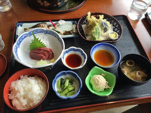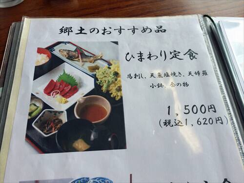 こちらでお得と思えた馬刺しと岩魚と天ぷらが楽しめる1,500円のひまわり定食にしました。