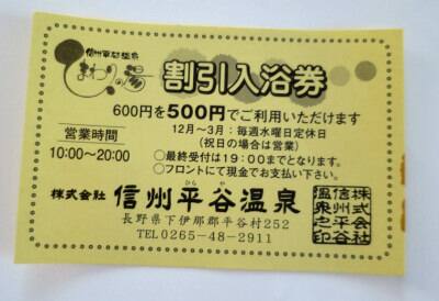 食事後にお風呂利用の方には便利な割引券です。