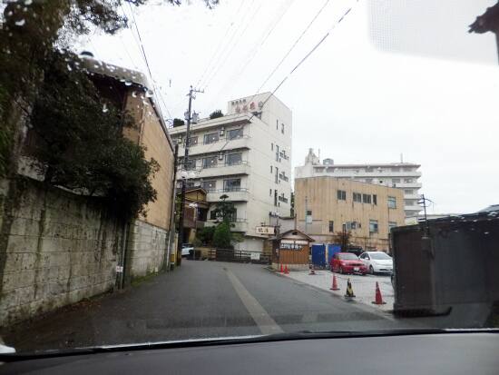 粟津温泉街の狭い道を進みますと奥の方に法師はありますが、旅館よりも手前に駐車場がありますので旅館が近くにあることがわかります。