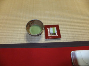 私たちの後から来た団体の方も自分たちで座る場所を選び、座り終えましたらお茶とお菓子が運ばれてきました。