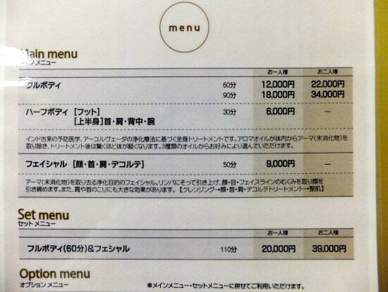 料金はフェイシャルが9,000円、パックが2,000円となっていました。