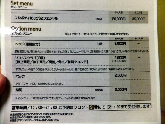 夜10時からのエステでしたから全身ではなくフェイシャルとパックのみとしました。