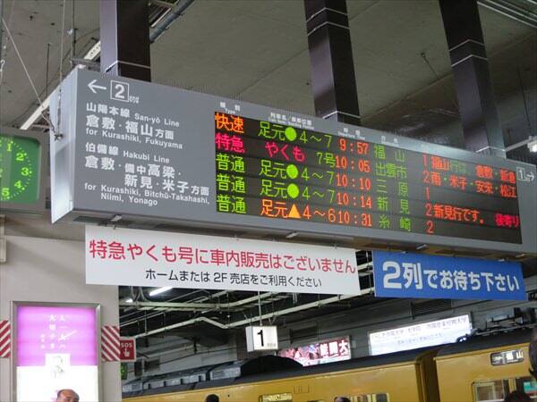 岡山駅でのやくもへの乗り換えは初めてでしたから心配しましたが、乗り換え表示もしっかりされていましたので実際には5分ほどでできました。