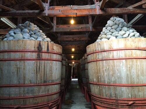 味噌蔵の中では木の桶がたくさん並んでいる姿を見ることができます。